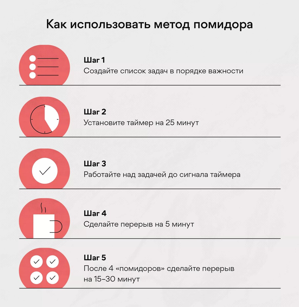 Важно также работать над мотивацией и ленью. Спортивный психолог советует начать с малых шагов и постепенно увеличивать сложность задач. Кроме того, можно использовать технику помидора для концентрации на одном деле хотя бы 25 минут.