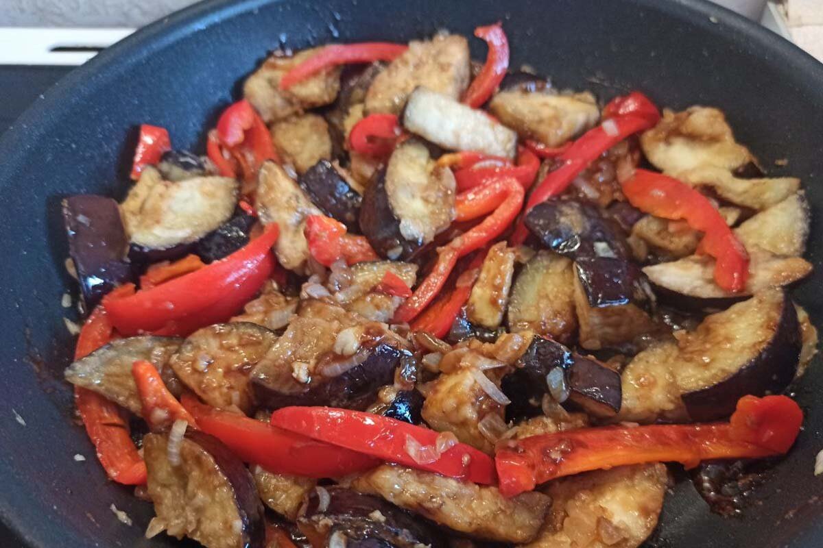 Для начала, я подготавливаю баклажаны, фаршированные фетой и помидорами. Затем я их обжариваю в крахмале до хрустящей консистенции. В это время я готовлю кисло-сладкий соус из ингредиентов, которые легко найти на любом рынке.