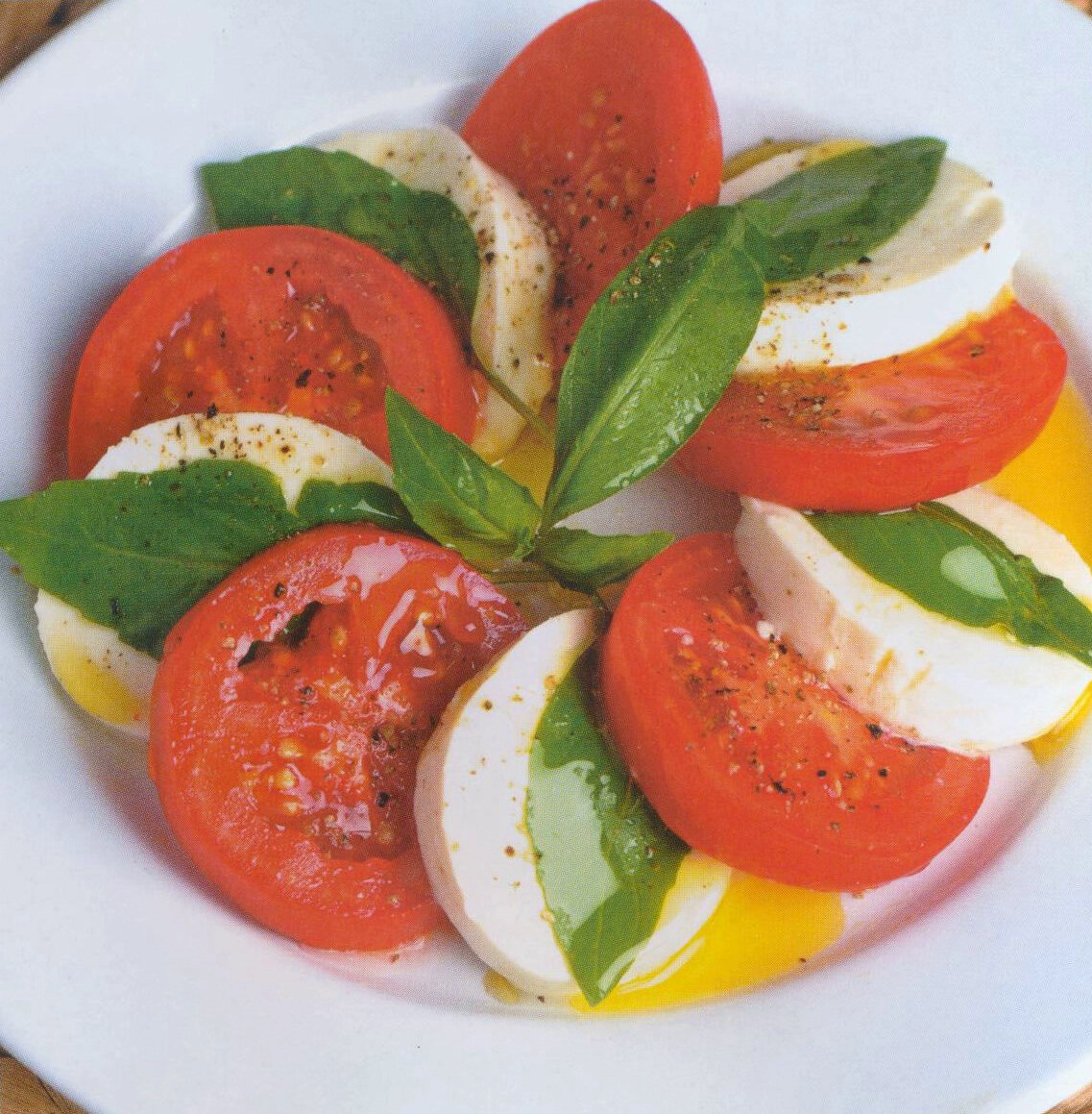 Для начала необходимо нарезать помидоры на дольки, а затем смешать их с тонкими слайсами сыра Моцарелла. Добавьте к ним несколько веточек свежего базилика и полейте все оливковым маслом. Посыпьте сверху бальзамиком и вы можете уже наслаждаться вкусным салатом.