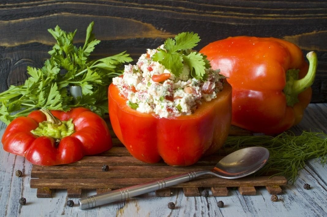 Вот простой и вкусный рецепт болгарского перца, фаршированного козьим сыром: