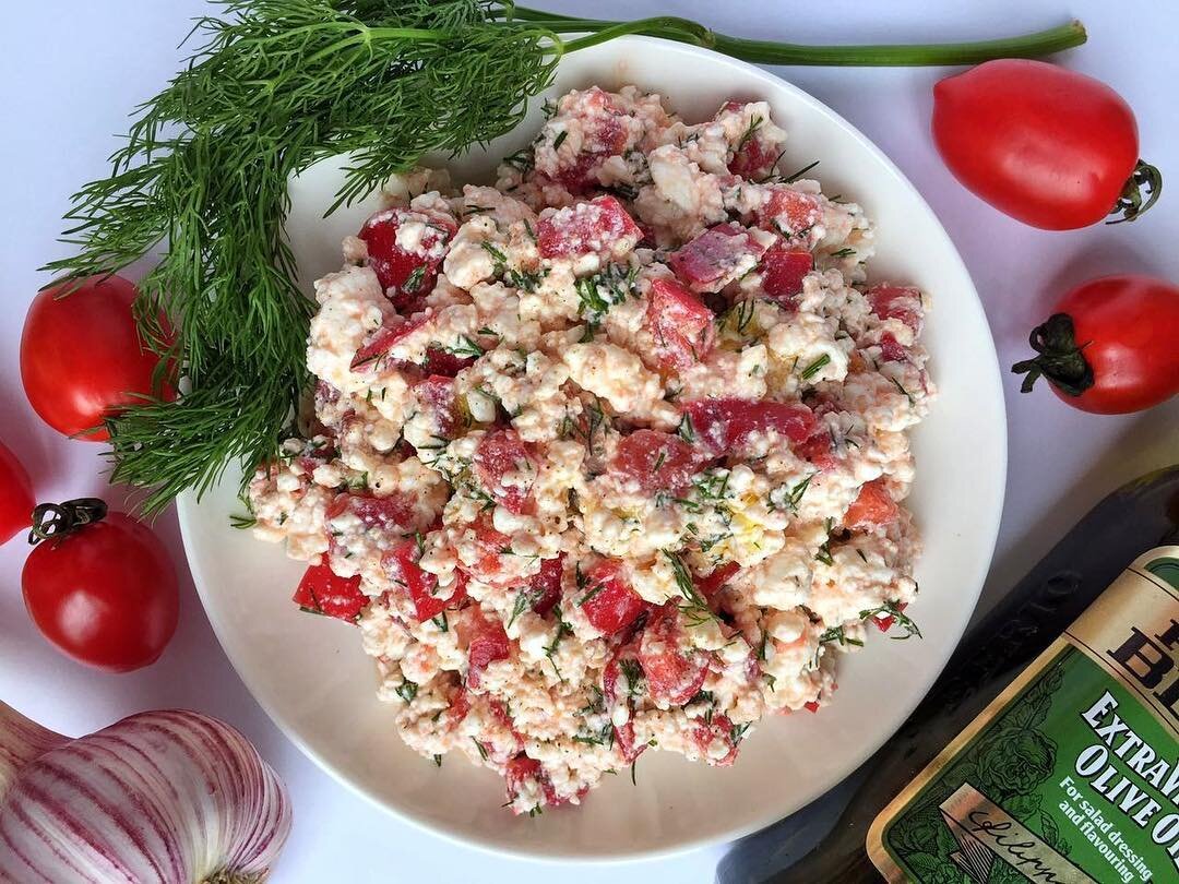 Салат из помидоров с творожным сыром - это классическое сочетание ингредиентов, которое может быть украшено разными добавками. В этом рецепте мы будем использовать помидоры, творог, чеснок и зелень для создания нарядного и вкусного салата.