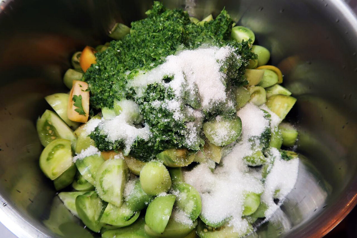 Хитрый способ готовки салата из зеленых помидоров для зимы