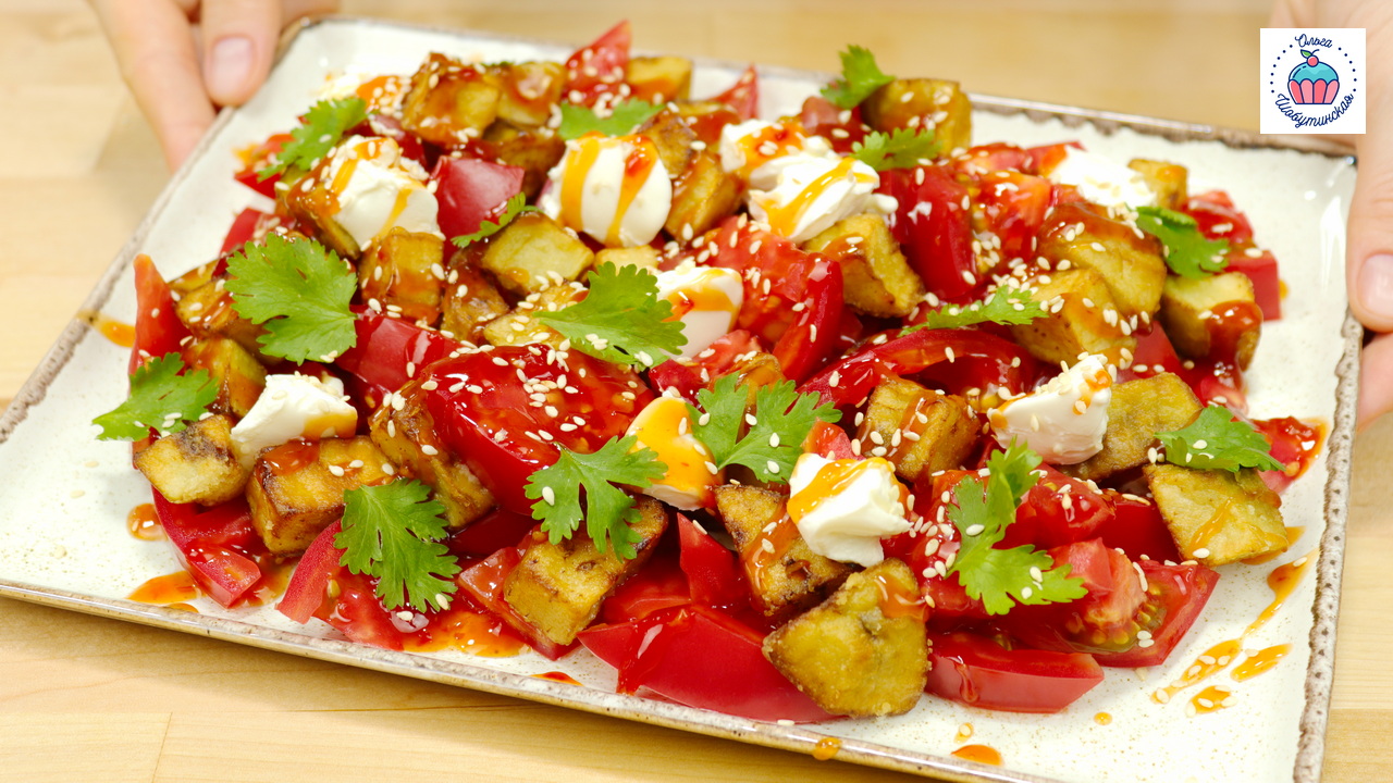 Рецепт хрустящего салата с баклажаном, помидорами и секретами его приготовления