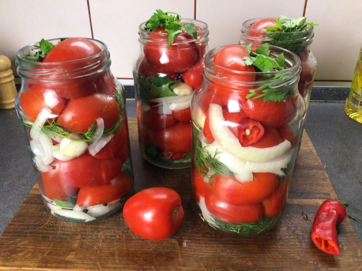 Для заготовки на зиму вкусных помидоров без стерилизации можно использовать следующий пошаговый рецепт: