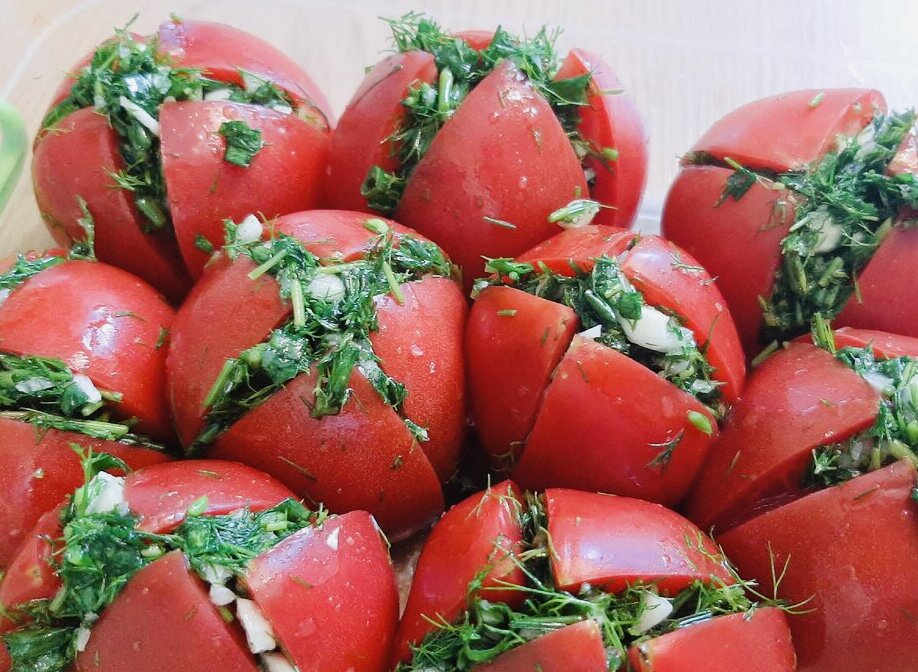 Чесночные помидоры с зеленью: рецепт для любителей здоровой еды