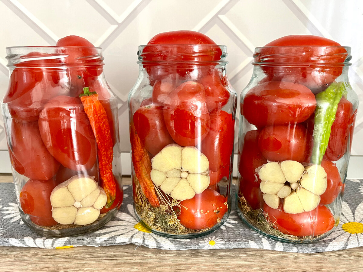 Для начала маринада необходимо приготовить раствор из 1 литра воды, 20 граммов соли и 10 граммов сахара. Затем к этому раствору добавляется 2 столовые ложки яблочного уксуса или винной кислоты. Маринованные помидоры готовятся в холодильнике на протяжении 5-7 дней.