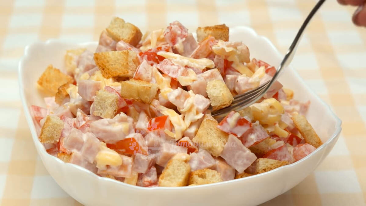 Салат - это один из наиболее популярных и простых способов приготовления закуски. В его состав могут входить различные ингредиенты, но классические комбинации включают помидоры, сыр, чеснок, майонез и сухарики.