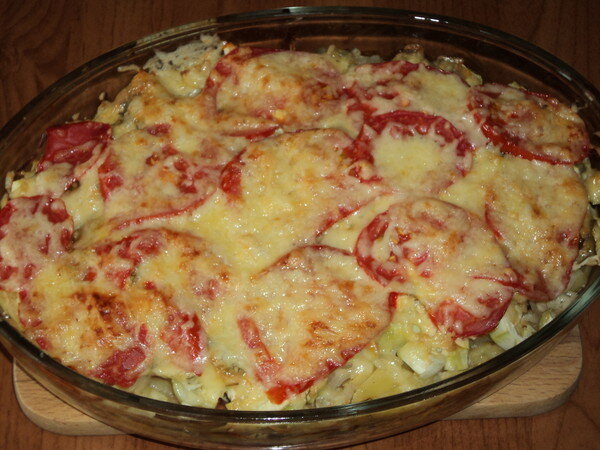 Уже готовый обед или ужин - это картофельная запеканка с помидорами и сыром! Она получается очень вкусной, если правильно приготовить. Вам нужно подготовить следующие ингредиенты: картофель, помидоры, сыр, масло, соль, перец.
