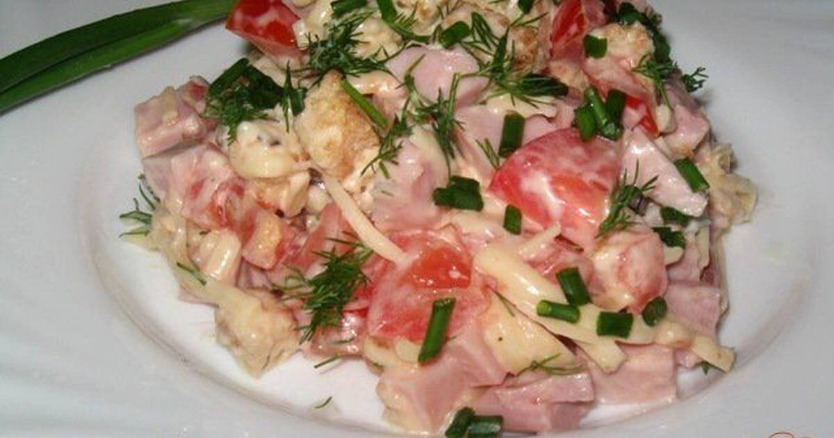 Веселый салат с ветчиной, помидорами и сыром - идеальное сочетание для приятного ужина. Ветчина, нарезанная тонкими ломтиками, сочетается с сочными помидорами, свежими огурцами и нежным сыром. Для приготовления этого салата вам нужно подготовить следующие ингредиенты: ветчина, помидоры, сыр, огурцы, зеленый лук, майонез и соль.