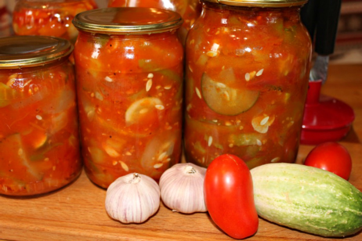 Вот несколько рецептов салатов из помидоров, которые можно приготовить на зиму: