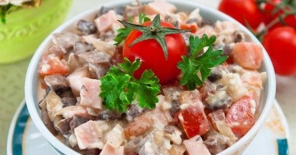 Также стоит упомянуть о салате с грибами и ветчиной. Для его приготовления вам потребуется шампиньоны, ветчина, помидоры, маслины и специи.