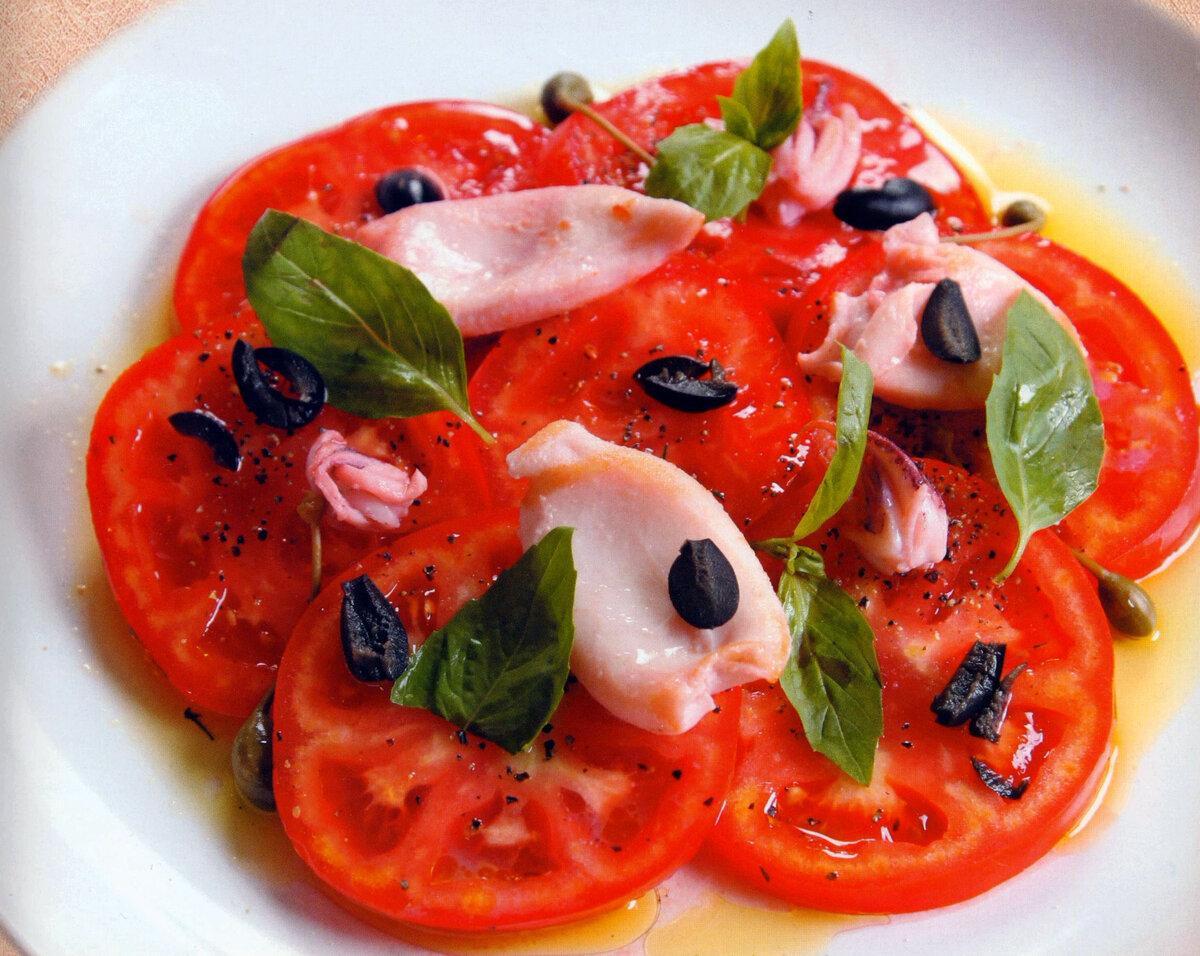 Также можно приготовить карпаччо из помидоров и кальмаров (Итальянская кухня). Кулинарные Чудеса Дзен. Для этого вам нужно нарезать помидоры на дольки, а также нарезать кальмары. Положите все ингредиенты на тарелку, добавьте соус песто и полейте оливковенным маслом.