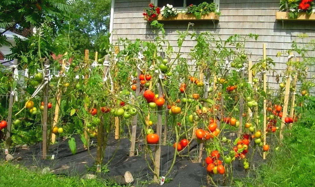 It's also important to provide support for the plants as they grow, using tomato cages or trellises. Avoid overwatering, which can lead to disease and pests. Also, use mulch to retain moisture and suppress weeds.