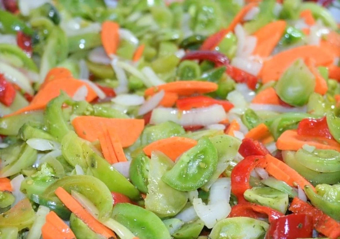 Рецепт салата из зеленых помидоров с овощами и сыром: пошагово