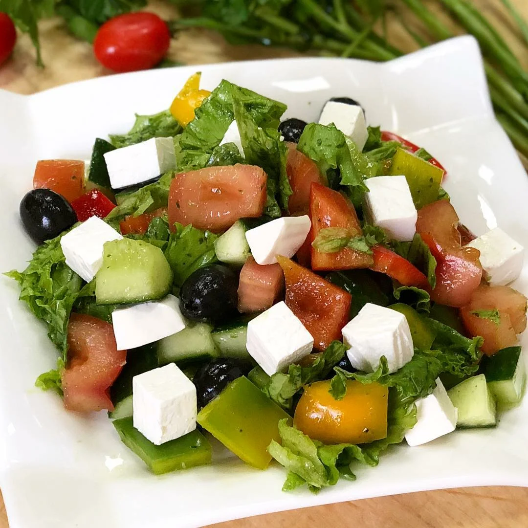 Также можно приготовить салат с помидорами огурцами и фетаксой. Для этого вам необходимы следующие ингредиенты: помидоры, огурцы, сыр фета, масло и соль.