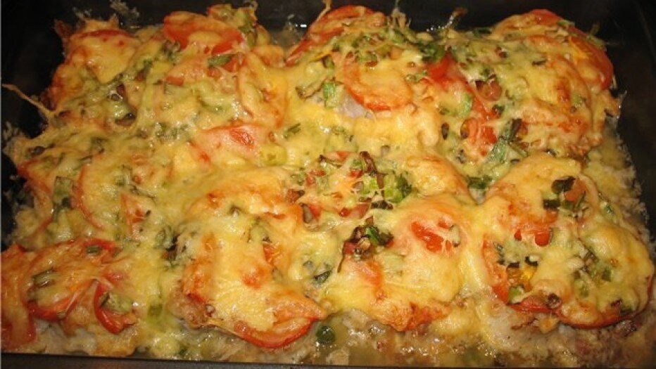 Помидоры, сыр и филе - три короны на одном блюде