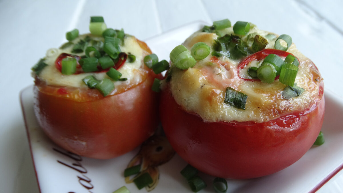 Также можно приготовить фаршированные помидоры с еврейским салатом. Для этого нужно нарезать помидоры на дольки, добавить к ним измельченный лук, перец, майонез и смешать все с сыром.