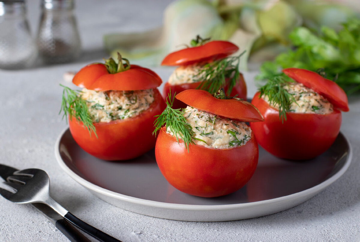 Фаршированные помидоры творогом и чесноком - простой рецепт на 30 минут.