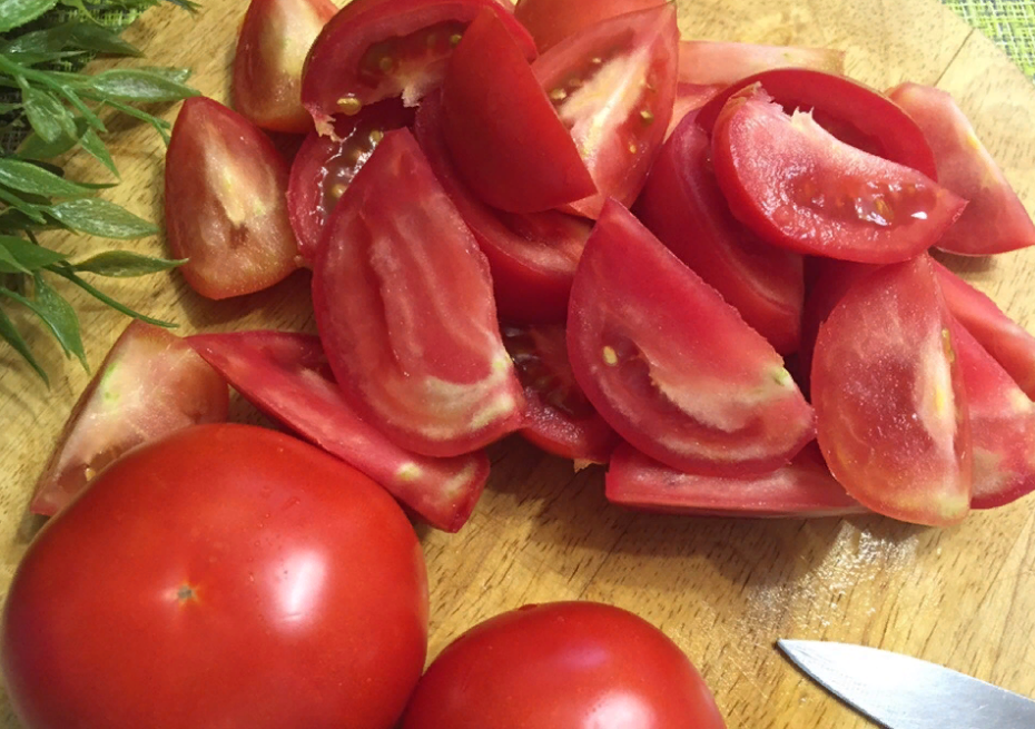 - Начните с приготовления помидоров. Промойте их в холодной воде, затем высушите салат на полотенце.