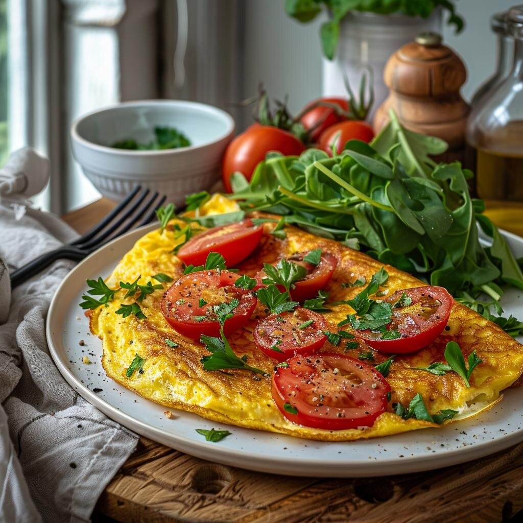 Омлет с помидорами - это идеальное блюдо для завтрака или обеда. Ведь он богат витаминами и микроэлементами, а также содержит полезные жиры и белок.