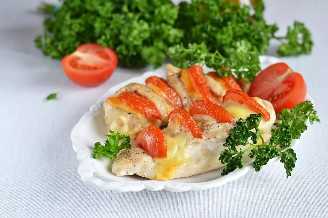 Помидоры и грудка в духовке: простой и вкусный рецепт