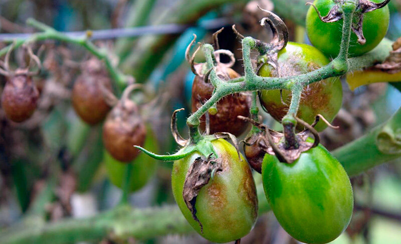 - Фитофтора - грибковое заболевание, вызывающее пятнистость листьев и обрыв плодов;