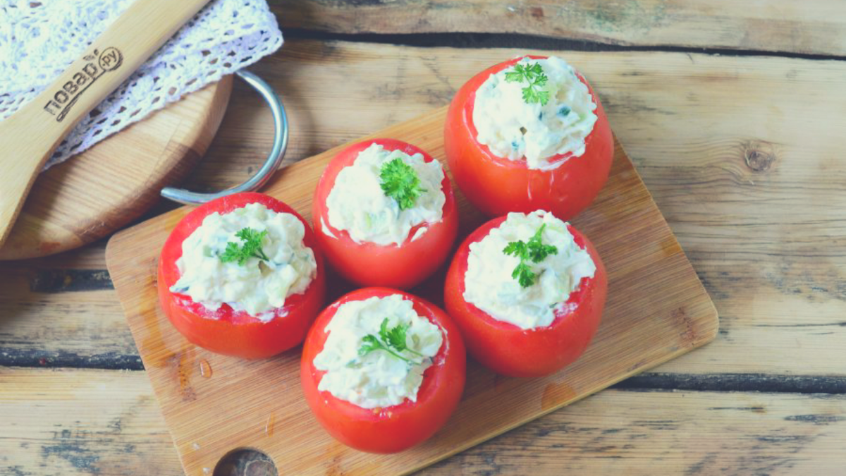 Для приятного времяпровождения, я предлагаю вам закуску в виде помидоров с сыром и чесноком. Это простое и вкусное блюдо, которое готовится за несколько минут.