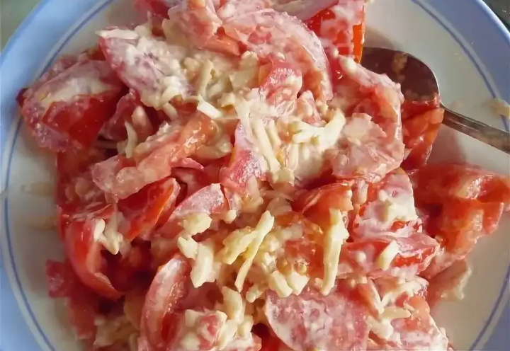 Салат Гусарский - это классический салат, который готовят с помидорами, сыром и колбасой. В него входят следующие ингредиенты: свежие помидоры, нарезанный на ломтики сыр, колбаса, зелень, соль и перец. Все компоненты смешивают в одной посуде и подают к столу.