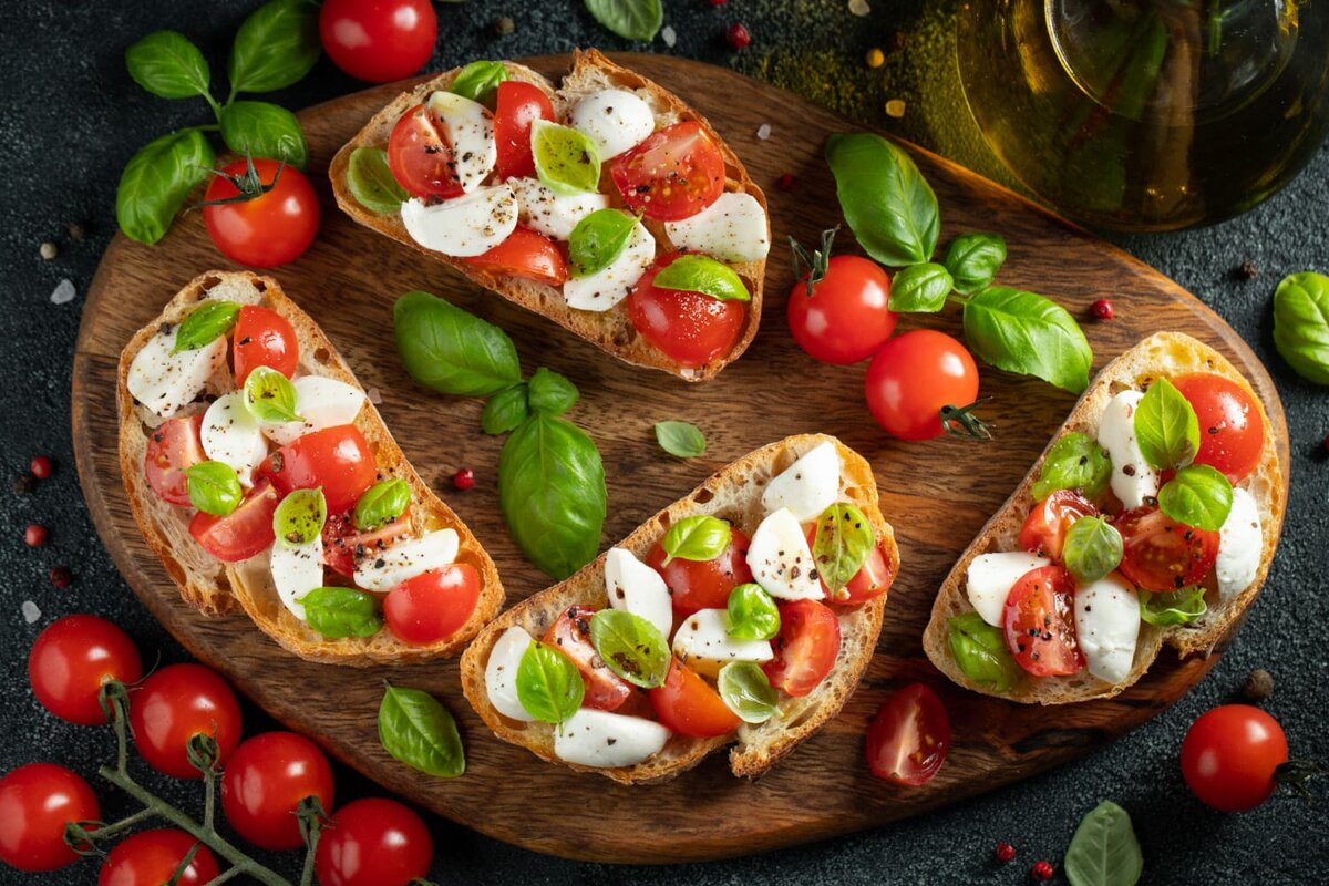 Также, не забывайте о классическом рецепте итальянской брускетты - тонких ломтиках хлеба, смазанных маслом и сочетающихся с томатами, сыром и базиликом. И для любителей здоровой еды, сладкий картофель заполненный семгами, сыром фета и помидорами - это идеальный рецепт!